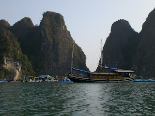 We just spend a couple of days in Halong Bay. It’s really amazing and bizar. We just drove through the narrow canals between the limestones and watched some nice islands and beaches. The boat was very luxiourios and the food delicious.
