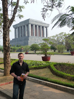 Am Donnerstag besuchten wir erst einmal das Ho Chi Minh Mausoleum. Fuer Touristen ist es eher unspektakulaer, Vietnamnesen hingegen sind sehr betroffen und ehrfuerchtig vor dem Anblick des gut praeperierten Toten. Die Zugangsprozedur um in das Mausoleum hereinzukommen koennte allerdings aus den besten DDR Zeiten stammen. Erst Handy abschalten, dann Kamera in einem extra Beutel abgeben, danach sich durchleuchten lassen und halb ausziehen, dann in Zweierreihen aufstellen und an die Hand fassen, bevor man unter den Augen von 100 Soldaten zum Mausoleum gefuehrt wird. Sehr abenteuerlich.