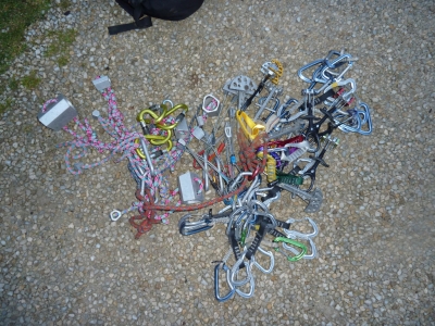 Für Samstag war geplant, noch mal die „Weidener Wand“ vom Ende des Vortages zu beklettern. Da ich Blut geleckt hatte, was das selbst absichern von Routen angeht, wollte ich mich dort in der eigentlich viel zu leichten Route „Enger Kamin (4-)“ versuchen. Beim Versuchen blieb es allerdings auch, denn ich muss zu meiner Schande gestehen, dass ich die Route nicht geschafft habe. Direkt zum Einstieg muss man über einen kleinen, überhängenden Felsvorsprung klettern, der erste Haken befindet sich auf ca. zweieinhalb oder drei Meter und ist mehr als nur schlecht erreichbar. Also wurde mein erster Hexentric gesetzt, der auch prompt kurz darauf wieder aus der Felsspalte hinaus kam.